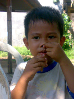 this photo is taken when this child not yet taken a bath and visit me to buy decorative fish, I was coincidence have decorative fish and sell him some, humorous of him, he will buy my fish, but him given permit to swim in my fishpond so also with the sister of different of old age******** 1,5 year, this is face expression of when asking the request of swimming my fishpond. and I give permit to him, to swim just small fishpond.